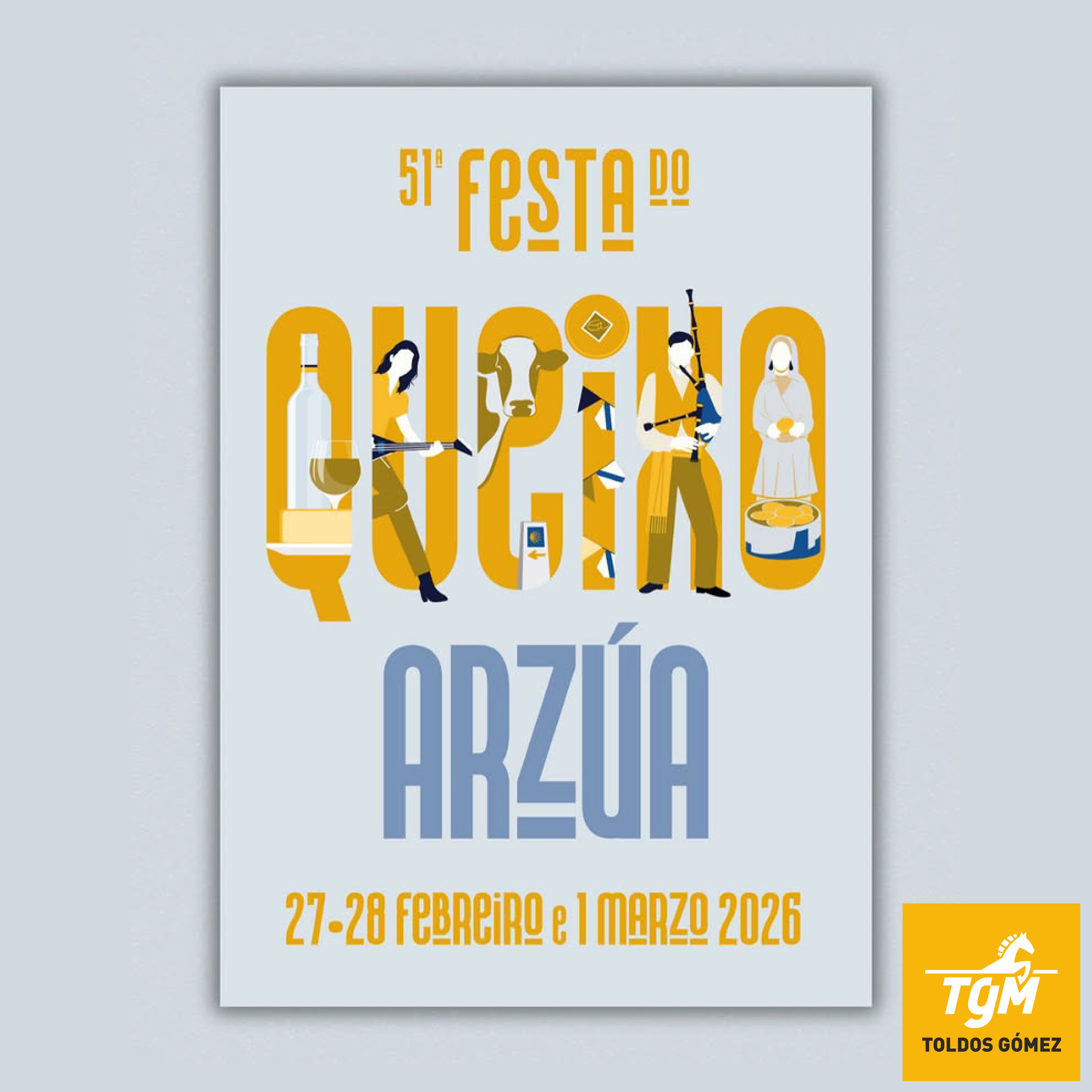 En esta edición de la Festa do Queixo, se ha querido homenajear a la emigración gallega, es decir, a todas aquellas personas que tuvieron que irse por el mundo, pero que nunca perdieron el vÃnculo con su tierra. Este fue el cartel ganador, obra de Aitor MarÃn, hijo de emigrantes arzuanos asentados en Bilbao.